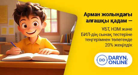 Дайындық кезеңін аз күйзеліспен өткізу және нәтижеге сенімді болу үшін Beeline және Daryn.online білім беру платформасы сізге ҰБТ, НЗМ және БИЛ сынақтарына 20% жеңілдік ұсынады.