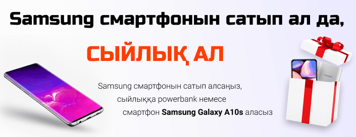 Samsung смартфонын сатып алсаңыз, сыйлыққа powerbank немесе смартфон Samsung Galaxy A10s аласыз.