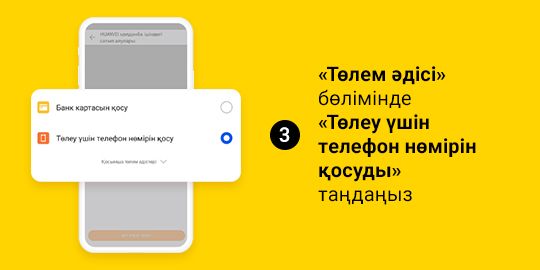 Төлем әдісі бөлімінде "Төлем телефонының нөмірін енгізу" тармағын таңдаңыз;
