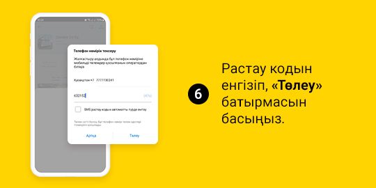 5. Кодты енгізіп, «Төлеу» батырмасын басыңыз.