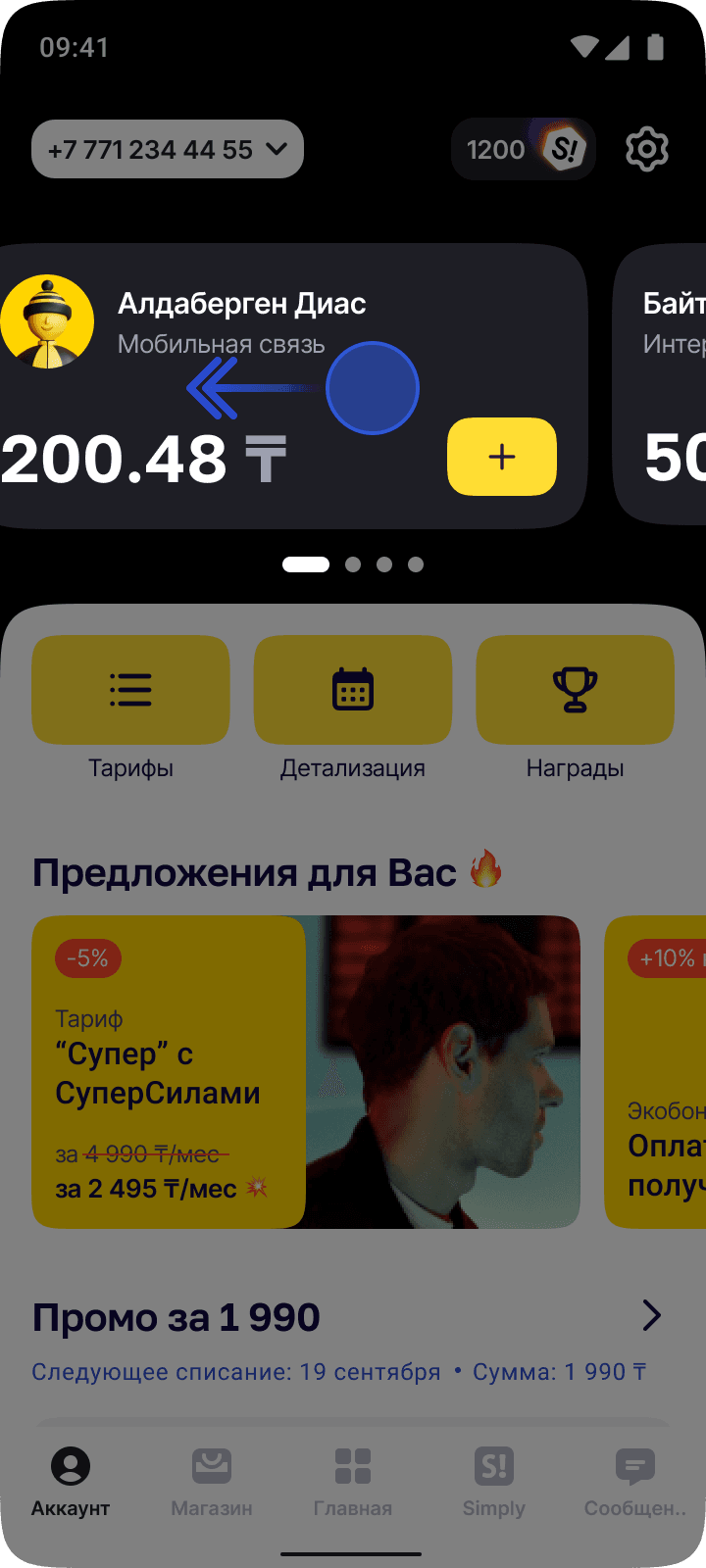1. Скачайте приложение Janymda и авторизуйтесь под мобильным номером. Свайпните влево для перехода в свой логин.