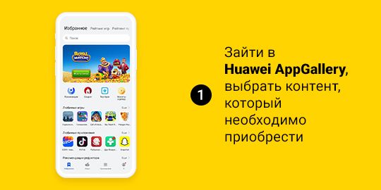 Зайти в Huawei AppGallery, выбрать контент, который необходимо приобрести;