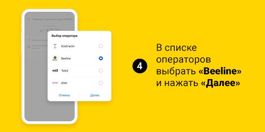 В списке операторов выбрать "Beeline" и нажать "Далее";